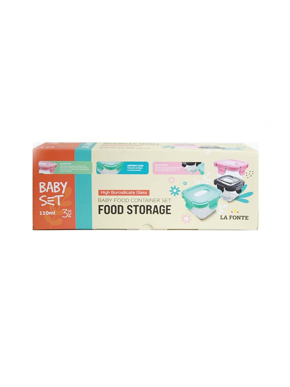 Bộ 3 hộp thủy tinh chịu nhiệt đựng thức ăn em bé 110ml La Fonte 003384