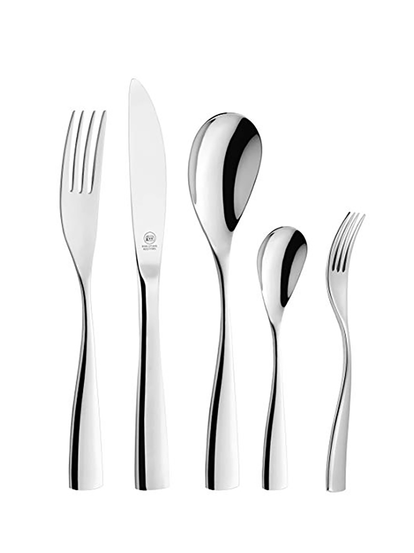 Bộ đồ ăn sang trọng này giúp tô điểm bàn ăn với các đường cong thanh lịch của nó. Bộ sưu tập được làm bằng thép mạ crôm 18/10 chất lượng cao nhất