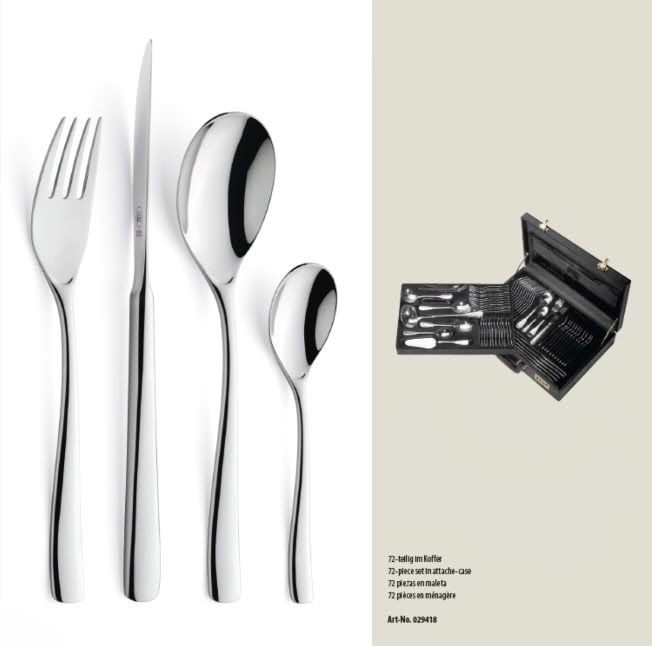 - Bao gồm: 12 dao ăn, 12 nĩa ăn, 12 muỗng ăn, 12 muỗng cà phê, 12 dĩa bánh, 2 nĩa ăn thịt 15,5cm, 2 muỗng múc, 1 muỗng múc súp, 1 muỗng nước sốt, 1 dao cắt salad gồm 2 phần, 1 muỗng xúc bánh, 1 muỗng kem, 1 muỗng đường, 1 kẹp đường / kẹp đá