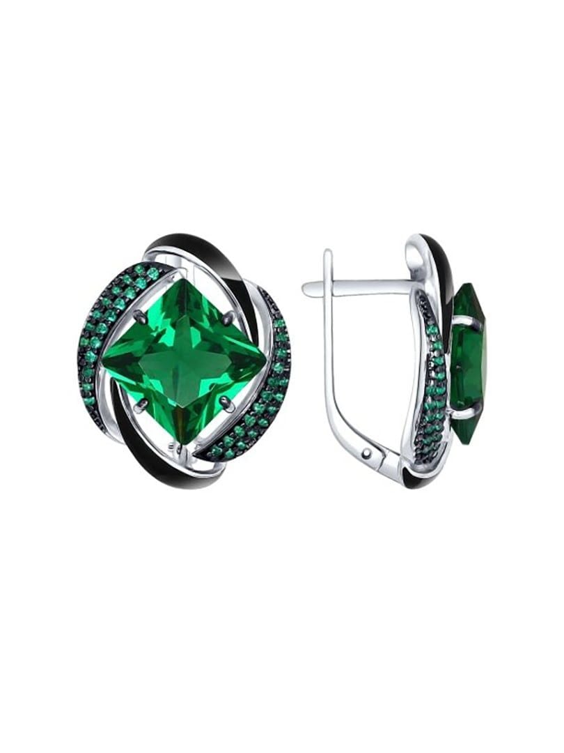 Bông tai bạc Sokolov với men, đá seatall và kim cương zirconia màu xanh - 92021455