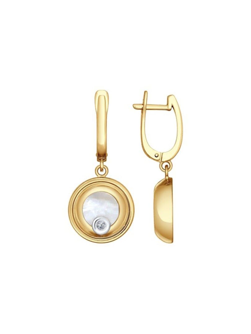 Thiết kế bông tai dài của SOKOLOV bằng vàng với kim cương, xà cừ và đá sapphire. Các sắc thái nhẹ phù hợp với bất kỳ trang phục nào, và có thể dễ dàng kết hợp với các đồ trang sức khác.