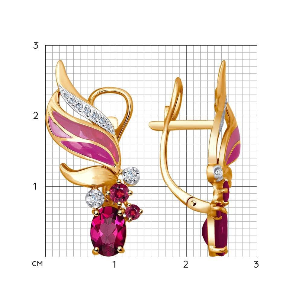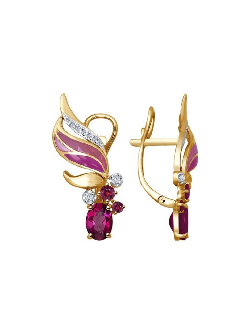 Bông tai vàng đính kim cương, hồng ngọc và men - 6029025NO179