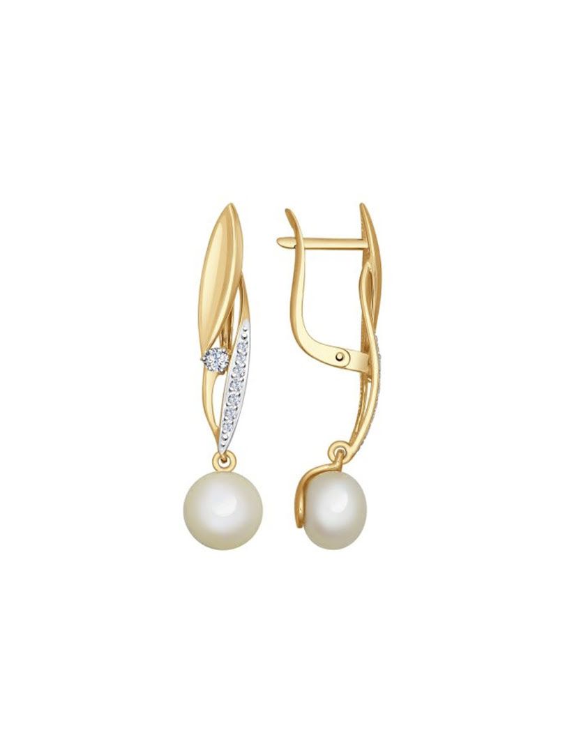 Bông tai vàng đính ngọc trai và kim cương zirconia - 792014