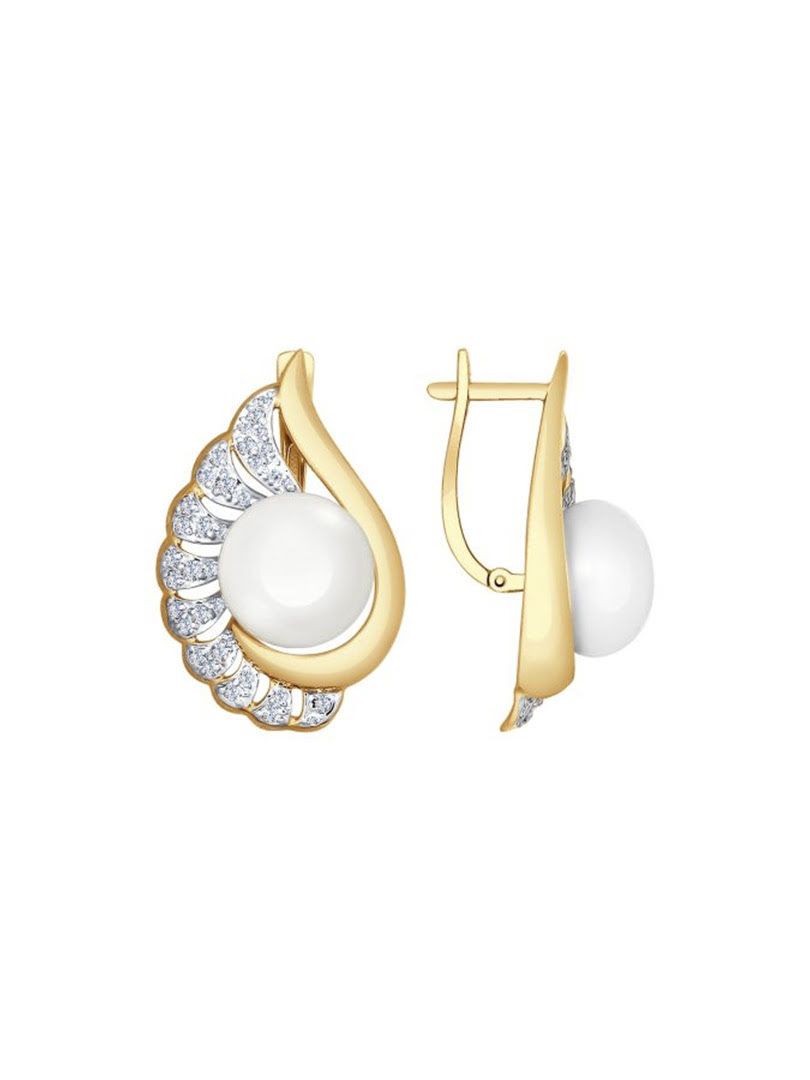Bông tai vàng đính ngọc trai và kim cương zirconia - 792062