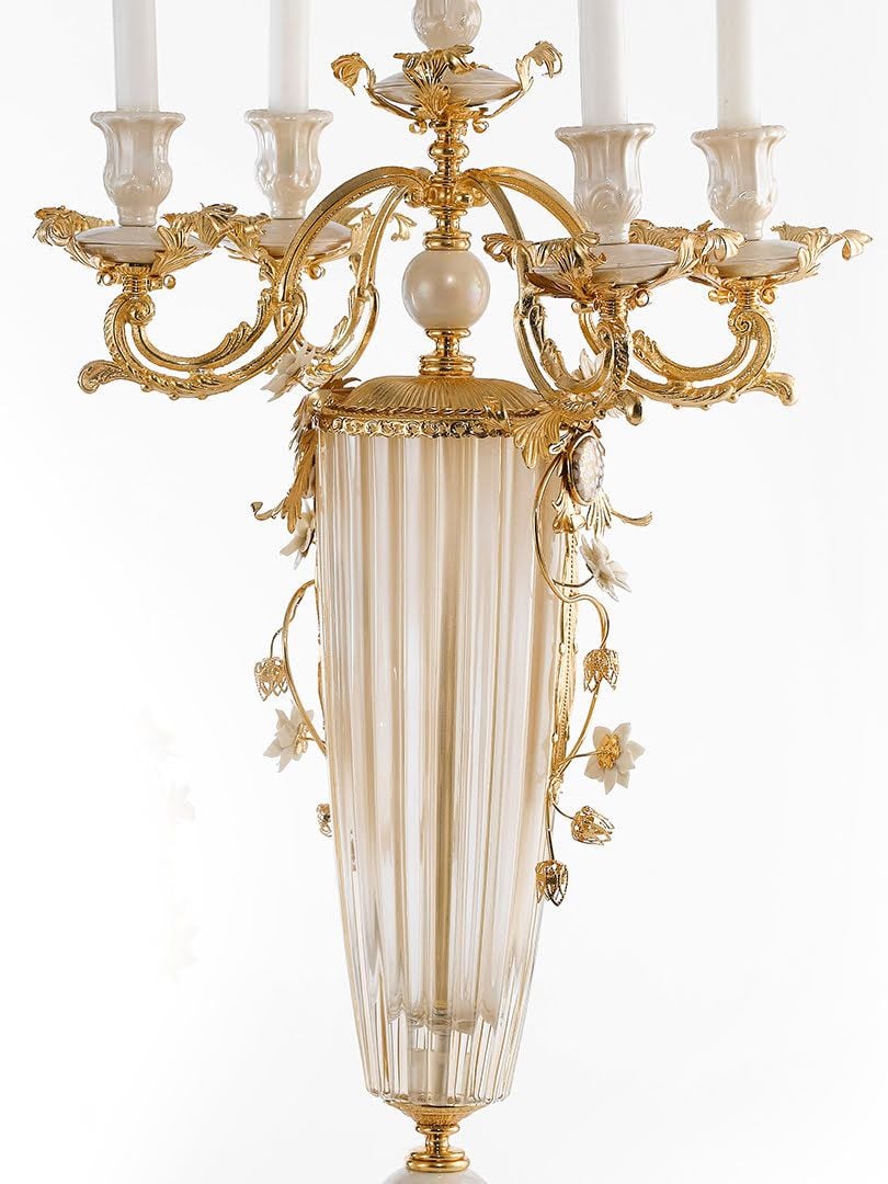 Chân nến trang trí bằng sứ dát đồng- CANDELIERE 5 F. PRIMAVERA D41 H83, Kích thước D41. H83, hiệu Caroline