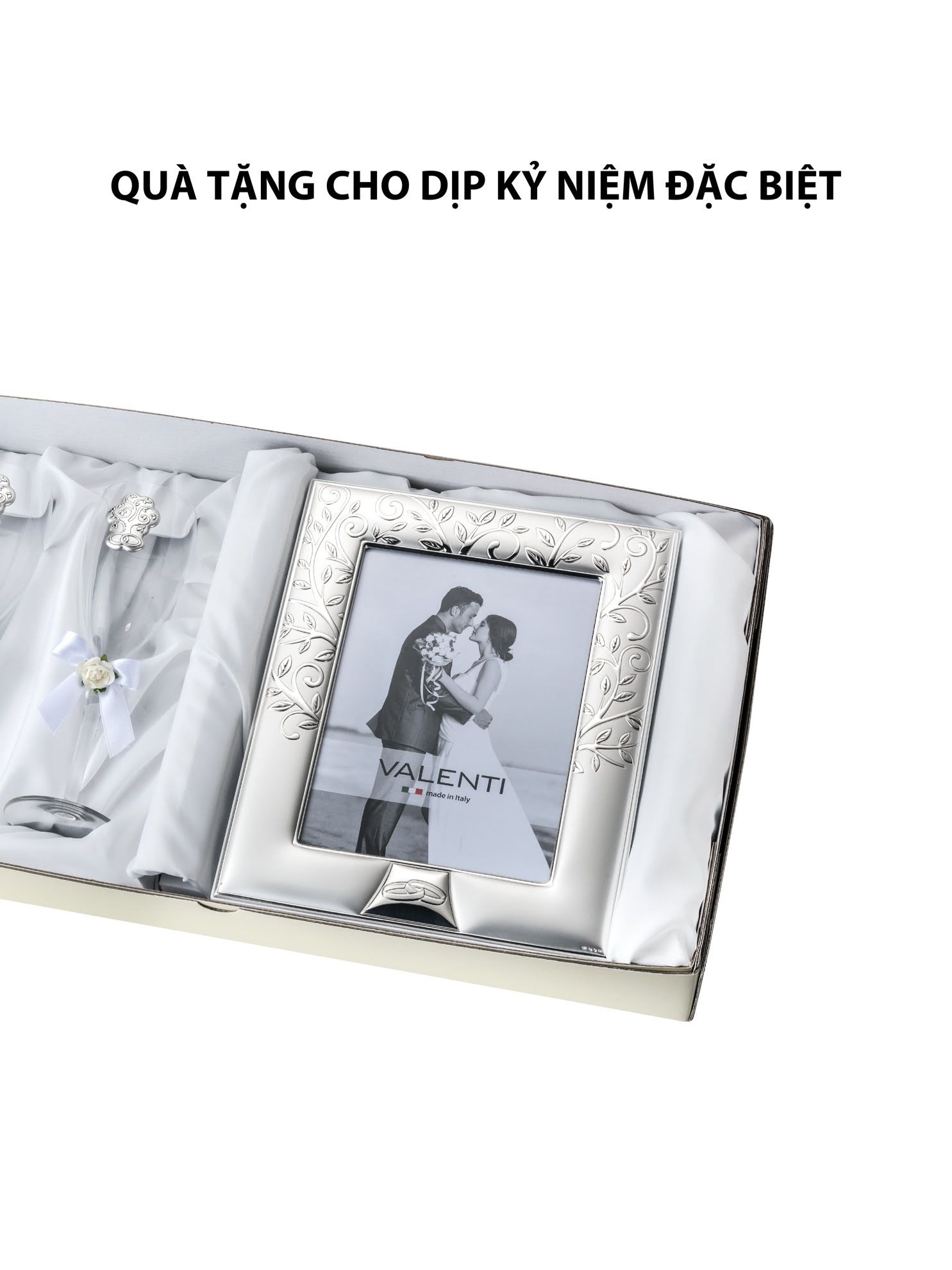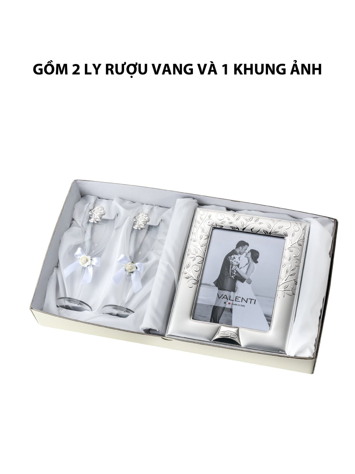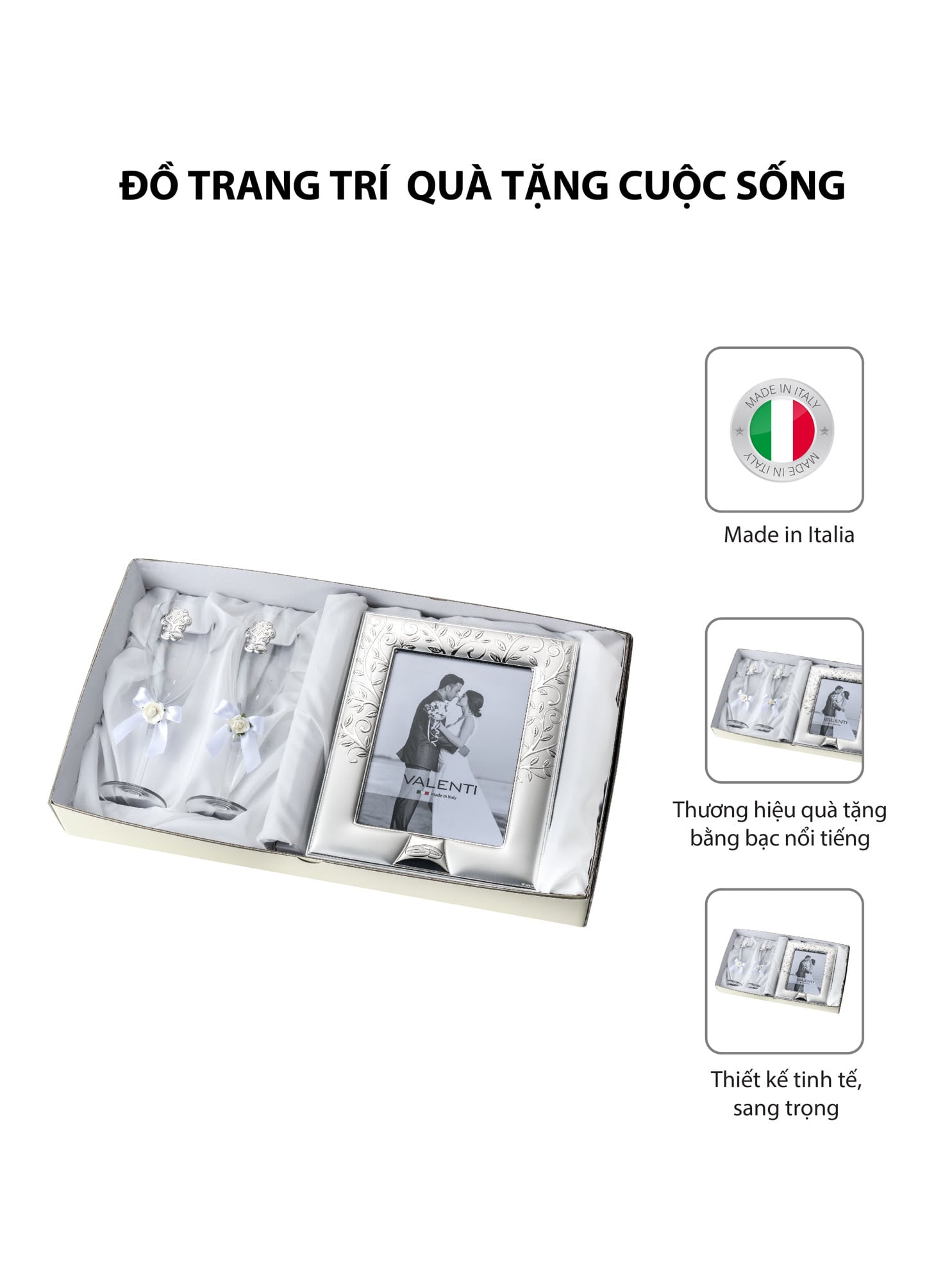 Đồ trang trí quà tặng cuộc sống (2 ly thủy tinh + khung ảnh 13x18) mạ bạc hiệu VALENTI - 16523