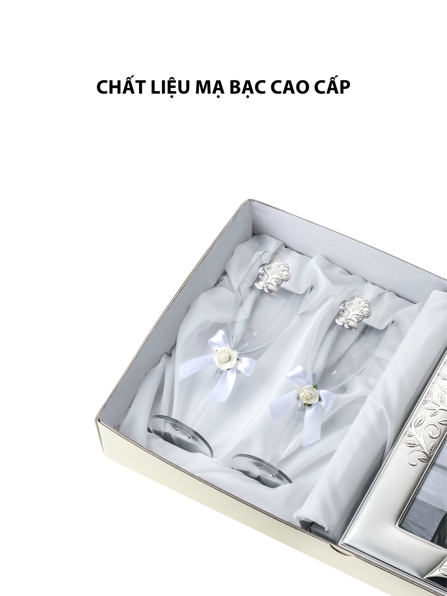 Chất liệu: Ly làm bằng thủy tinh có họa tiết mạ bạc và khung ảnh mạ bạc