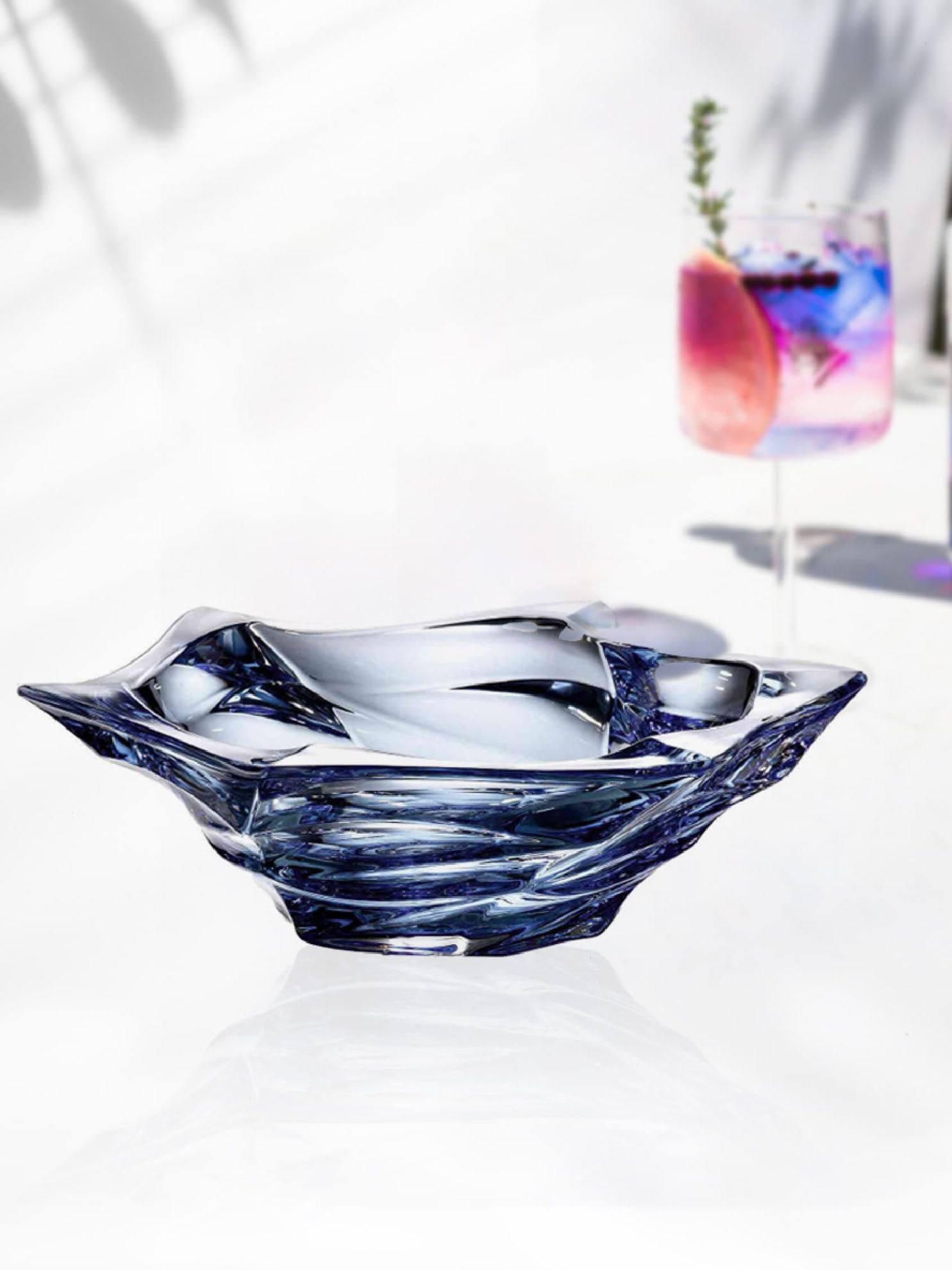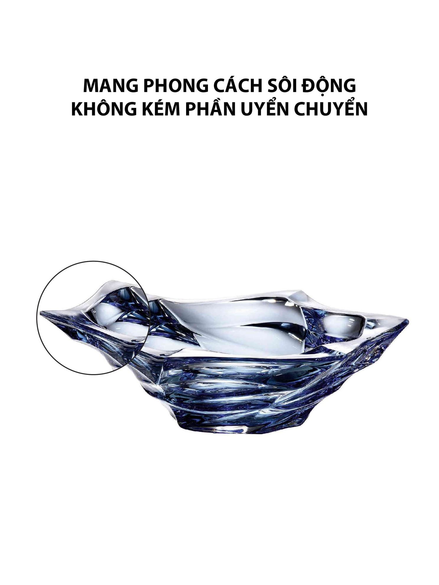 Khay pha lê Flamenco màu xanh Bohemia 330mm