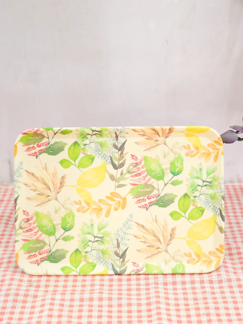 Bề mặt của khay là những họa tiết ngộ ngĩnh đáng yêu. Các loại trái cây, chim, bướm thiết kế vô xinh xắn với các màu sắc cuốn hút kết hợp với nhau rất hài hòa. Sản phẩm phù hợp sử dụng cùng các bộ bình trà, ấm nước trong phòng khách, nhà ăn, hay nơi làm việc.
