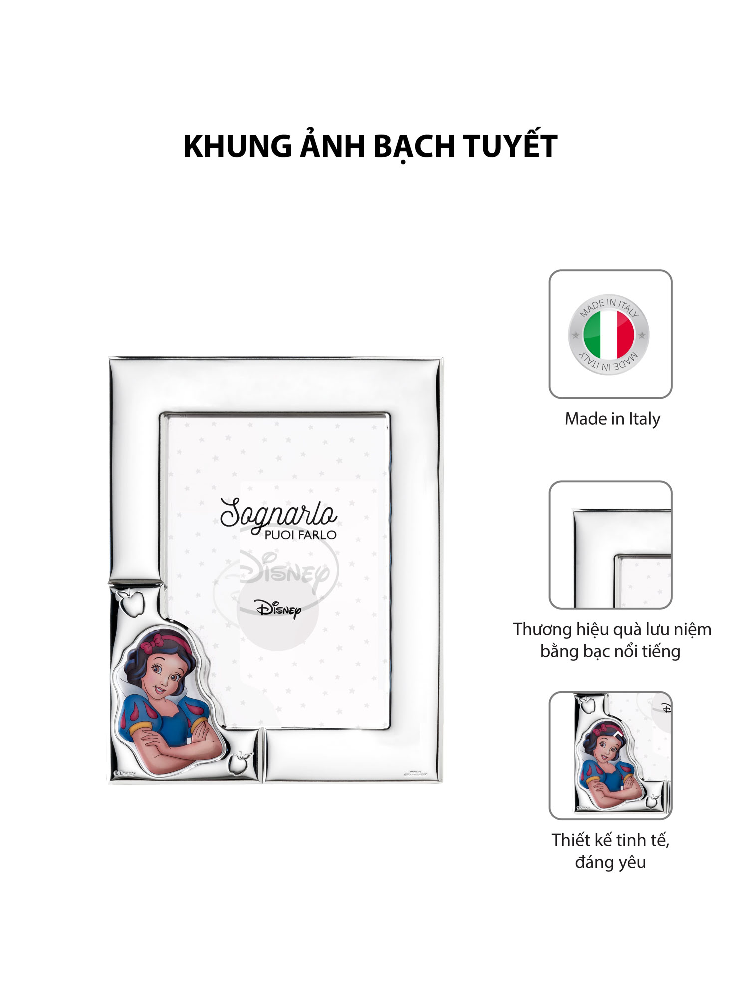 Khung ảnh Valenti với thiết kế hình Bạch Tuyết xinh đẹp, đáng yêu sẽ giúp bạn lưu giữ những khoảnh khắc đáng nhớ của con yêu theo cách tuyệt vời nhất.