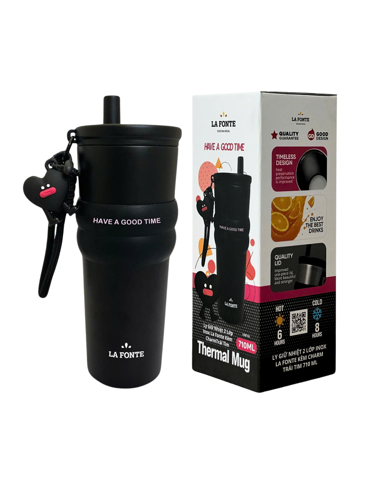 Ly giữ nhiệt 2 Lớp Inox La Fonte Kèm Charm Trái Tim 710ml-010887-BLA