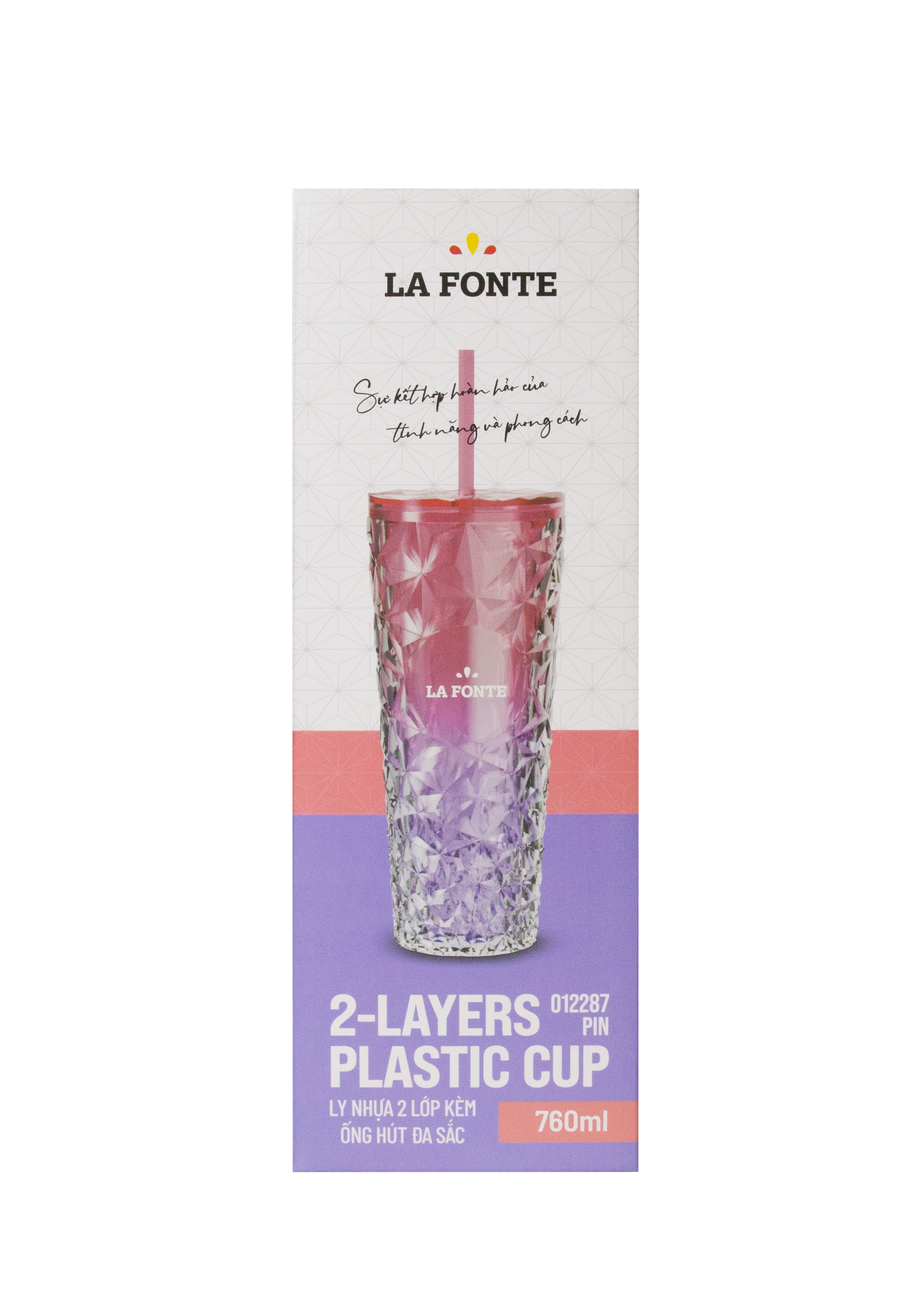 Ly nhựa 2 lớp kèm ống hút đa sắc La Fonte 760 ml - 012287-PIN