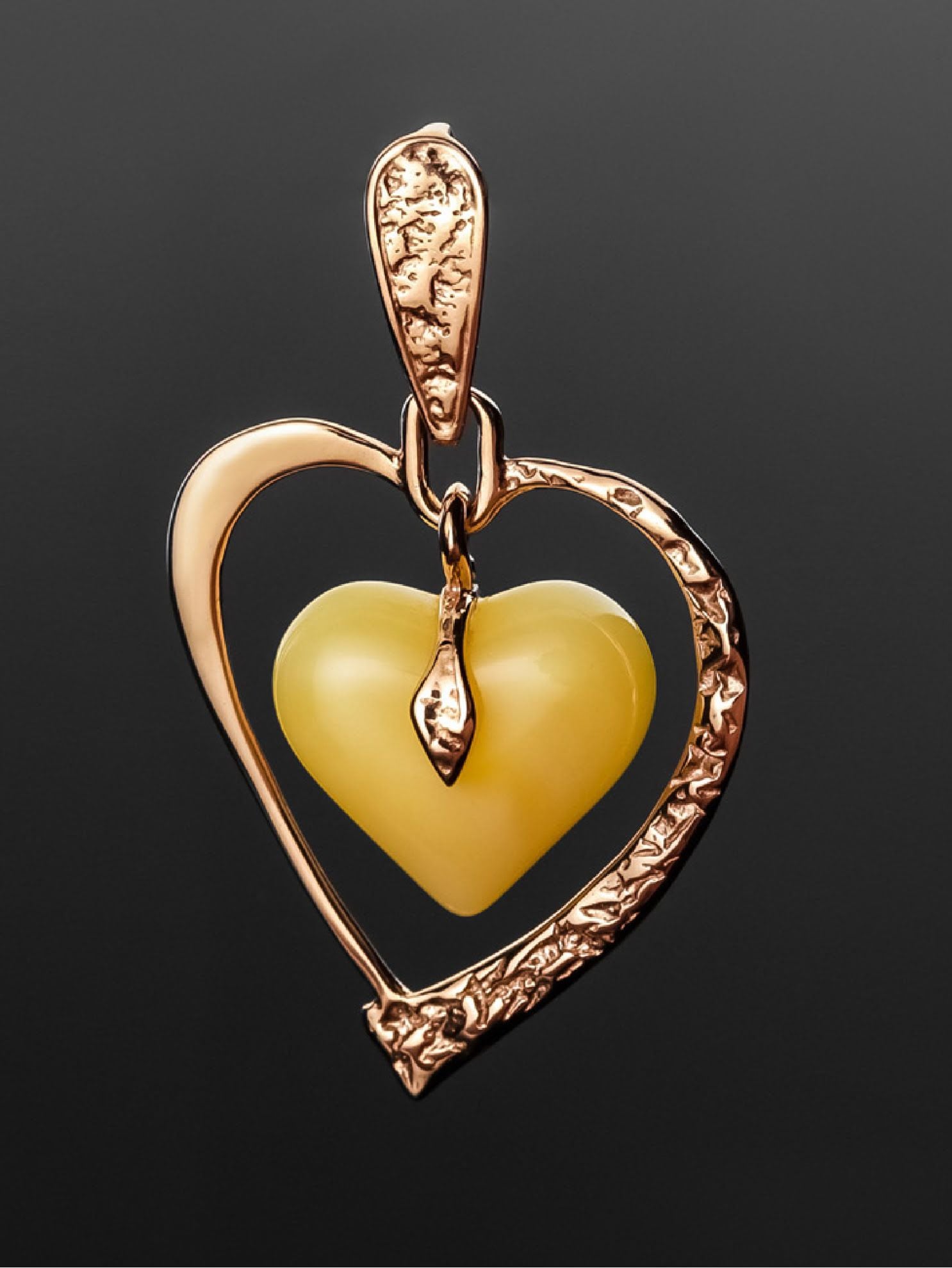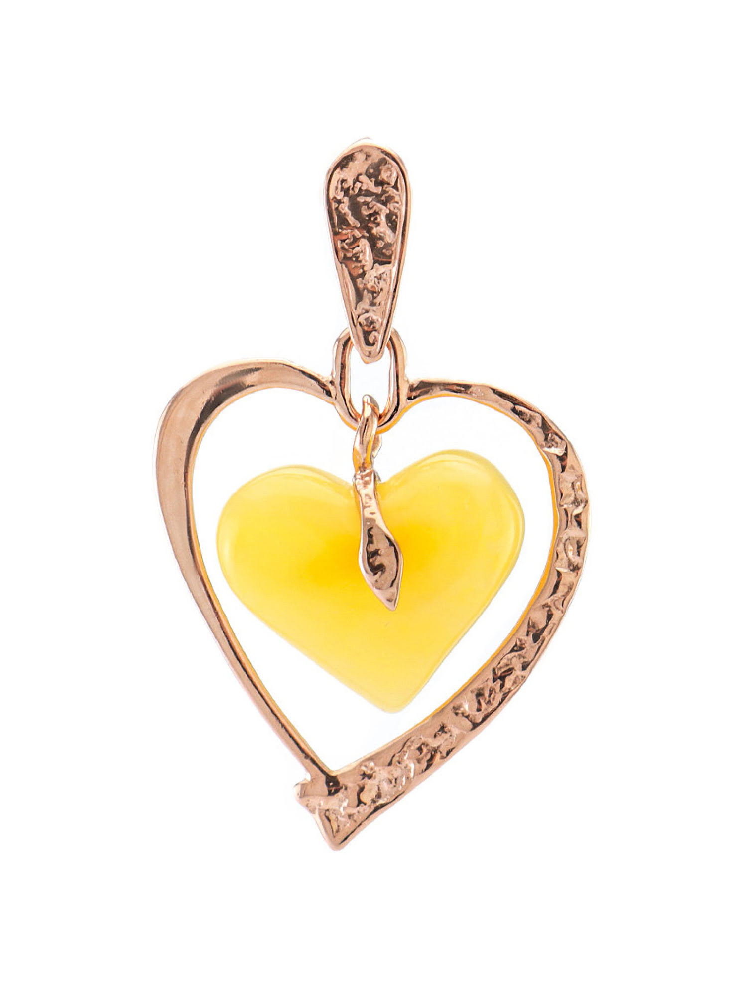 Mặt dây chuyền bàng vàng với hổ phách màu mặt ong hình trái tim - 607210058