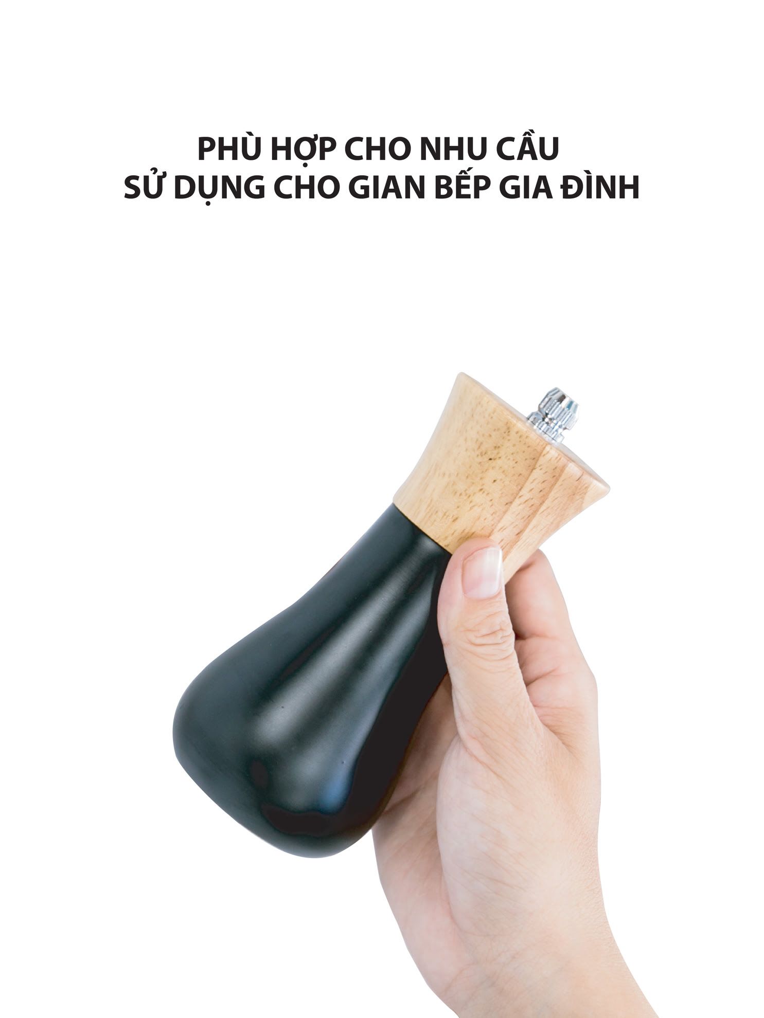 • Thành phần dụng cụ xay tiêu cầm tay gồm: Gỗ cao su, lưỡi xay làm từ gốm.