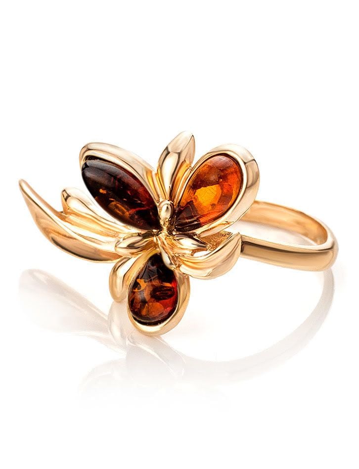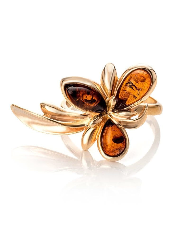 Nhẫn trang sức Amber Jewelry  bằng bạc đính đá hổ phách màu cognac Cypress 16 phủ vàng - 710010040