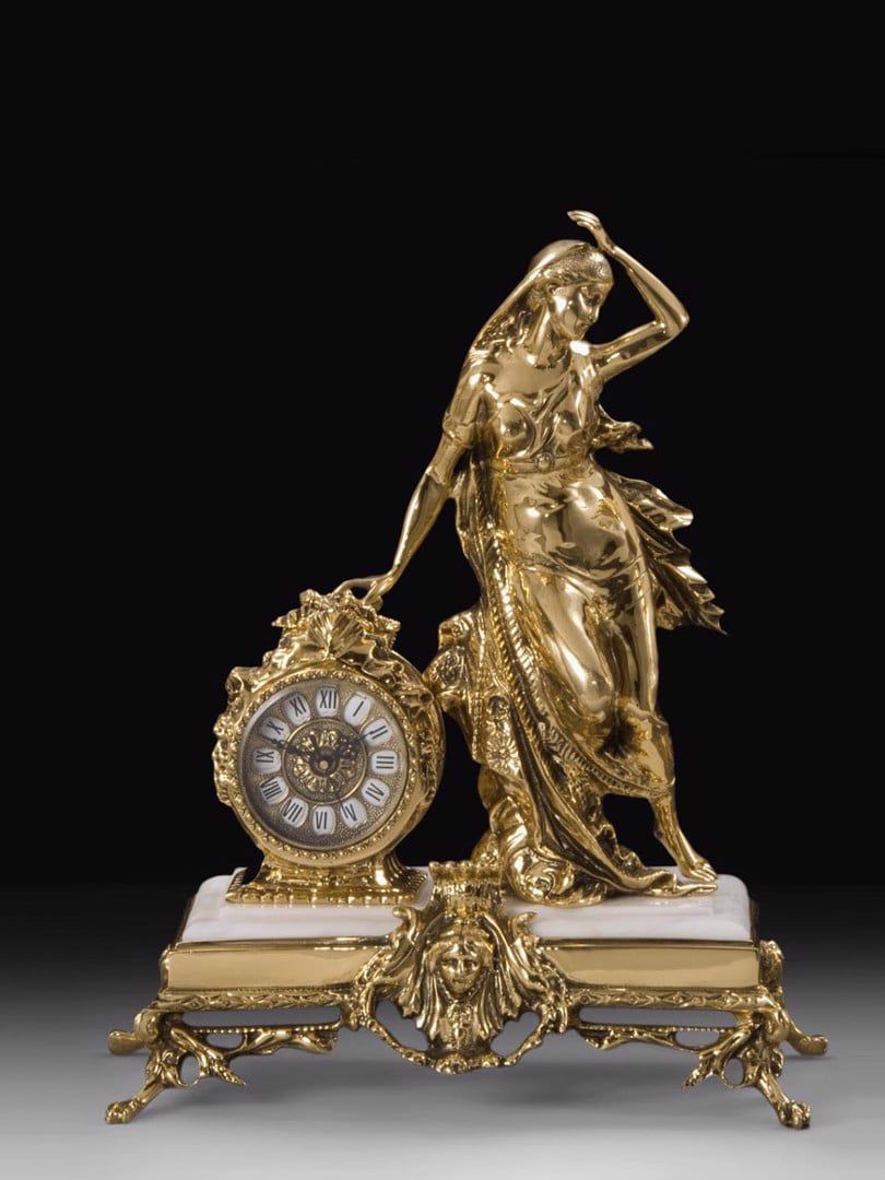 Tượng thiếu nữ đứng và chiếc đồng hồ để bàn Virtus-5410 là sản phẩm dành cho những người đam mê trang trí nội thất và đồ cổ hay chế tác lại.