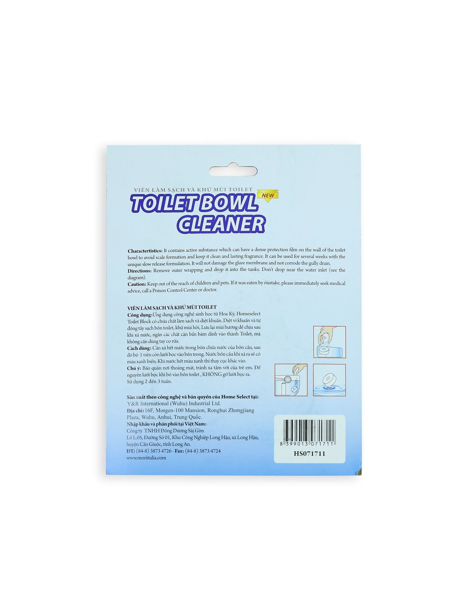 - Homeselect Toilet Block có chứa chất làm sạch và diệt khuẩn.