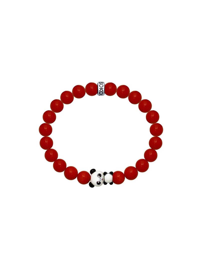Vòng tay bạc "Gấu trúc" đính đá sa hô hóa thạch và men - 8510500019
